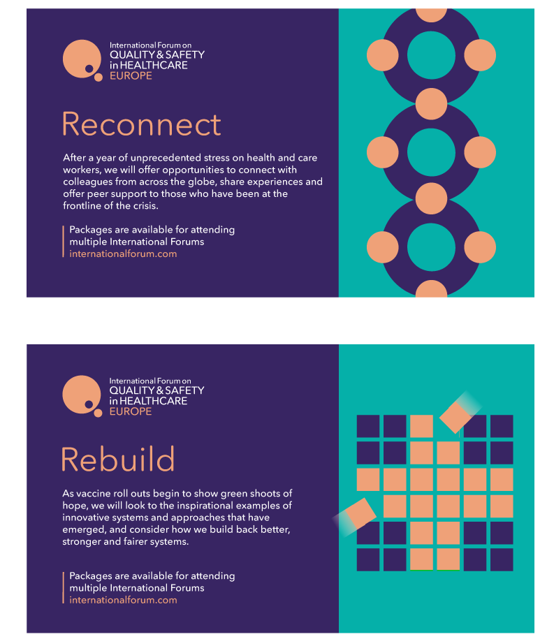 Once COVID struck, the Forum needed to adapt rapidly. Having worked with the the team since 2016 I was asked to devise a way of quickly enhancing the branding and visuals so they were better adapted to deliver the events virtually.